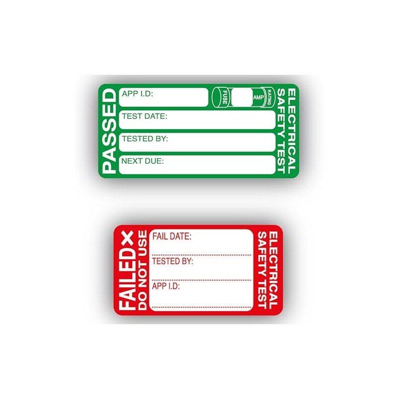 - PAT TESTING STICKERS SIZE: 24x51mm green pass test stickers, 23x43mm red fail pat test stickers