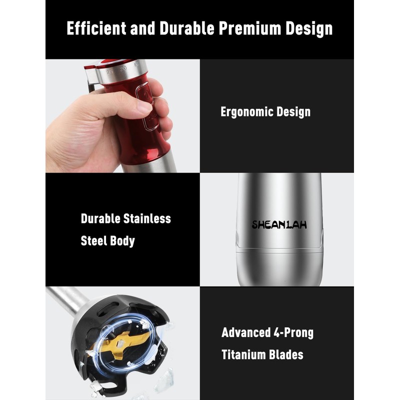 - 【4-Blade Titanium Head】Our immersion blender features a 4-blade titanium head for superior performance. Compared to standard 2-blade designs, it blends more efficiently, This cutting-edge design not only improves blending efficiency but also extends the lifespan of the blades, making it a reliable choice for all your culinary needs.