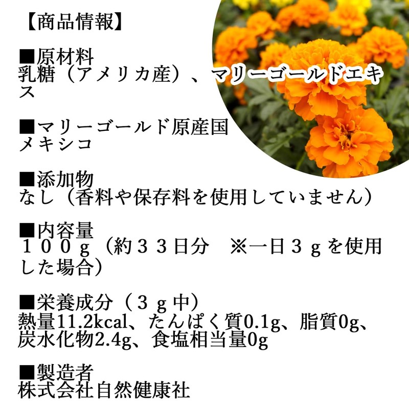 • 【原材料】乳糖(アメリカ産)、マリーゴールドエキス