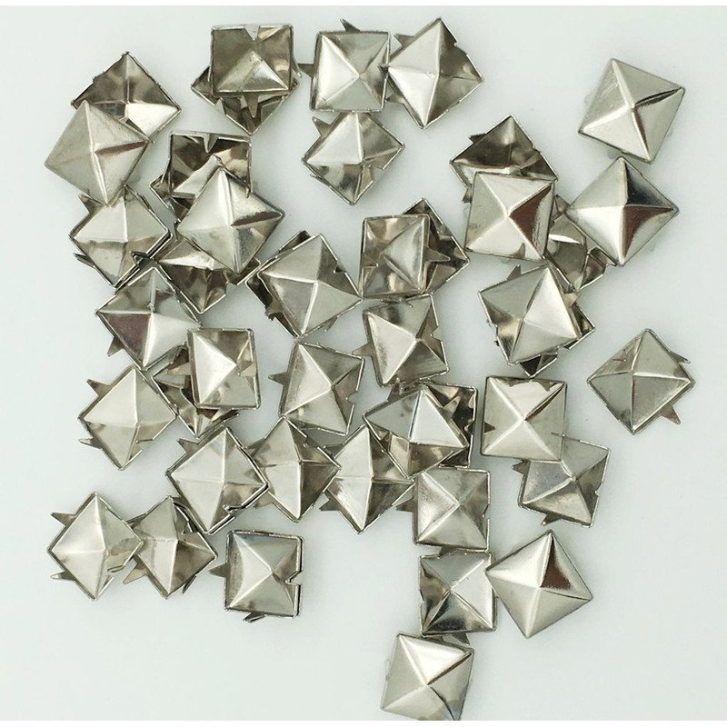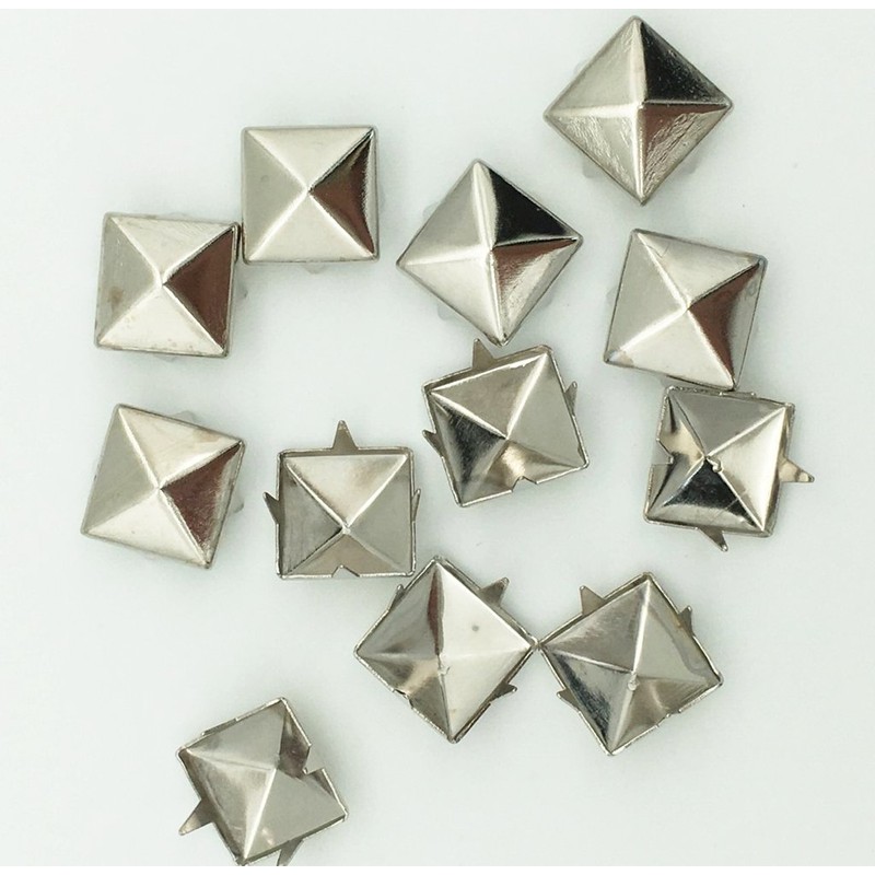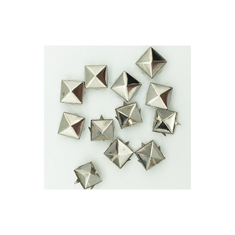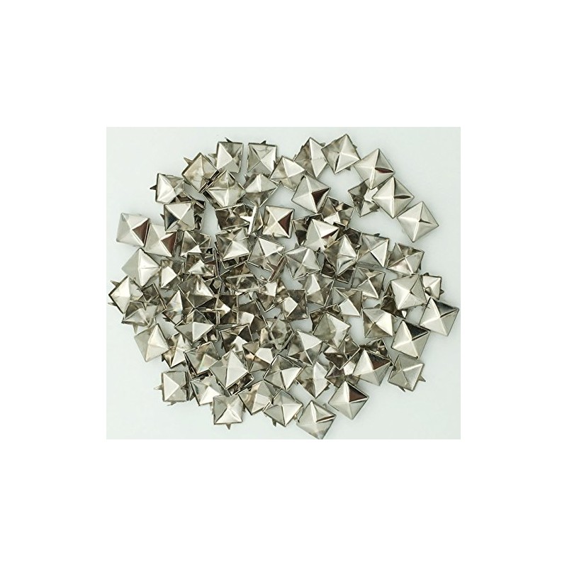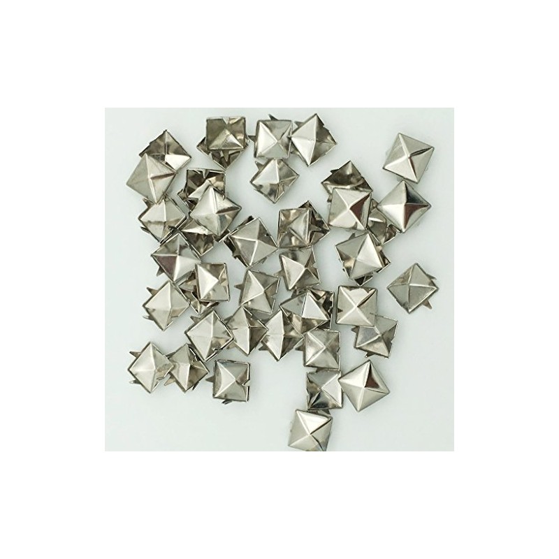 100pcs 10mm Square DIY Leathercraft Metal Punk Spikes Spots Pyramid Studs Nailheads (Silver)