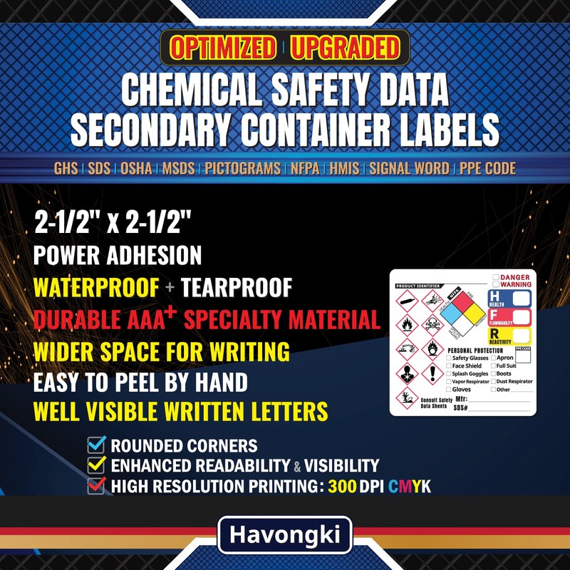 100pcs, 2-1/2" x 2-1/2", Optimized GHS Labels Hazardous Chemical Safety Data Stickers - HAZCOM Secondary Container HMIS OSHA MSDS Hazard NFPA SDS MSD Hazmat Sheet
