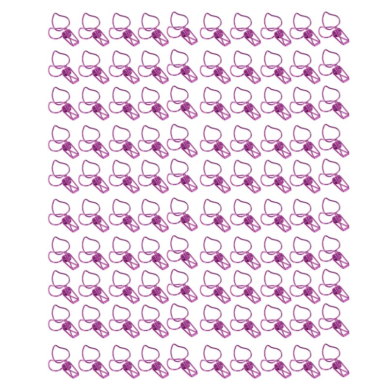 100pcs Binder Clips Cute Cartoon Peach Shape Metal Long Tail Clips Office Account Binder Clips Paper Clamps Purple