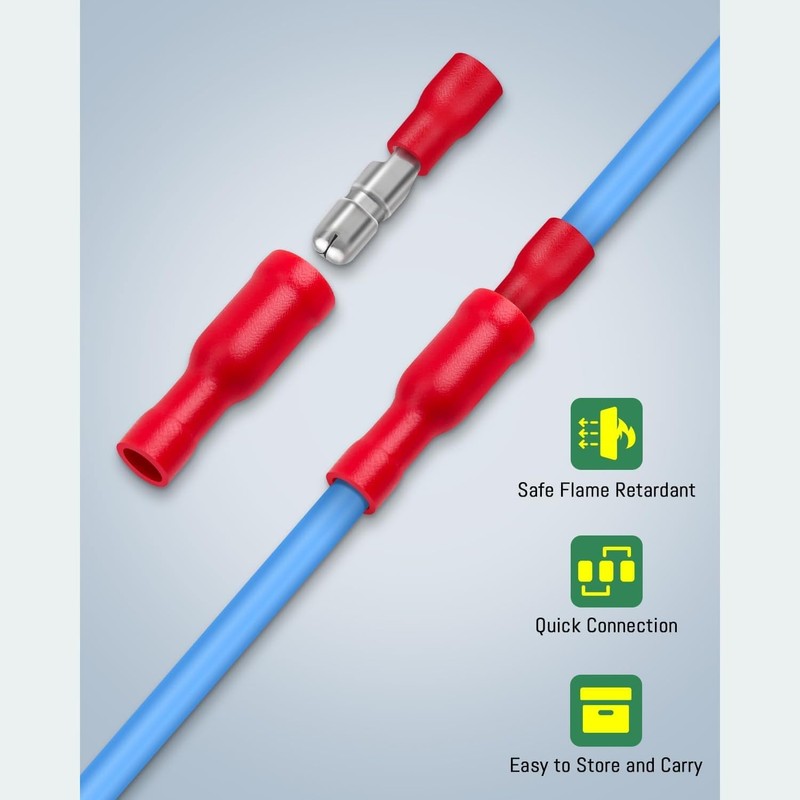 • 【Quality Materials】: The bullet connectors are made from tinned copper, which is known for its excellent conductivity and resistance to corrosion.The connectors are insulated with PVC (Polyvinyl Chloride), a material that is widely used for its durability and insulation properties.