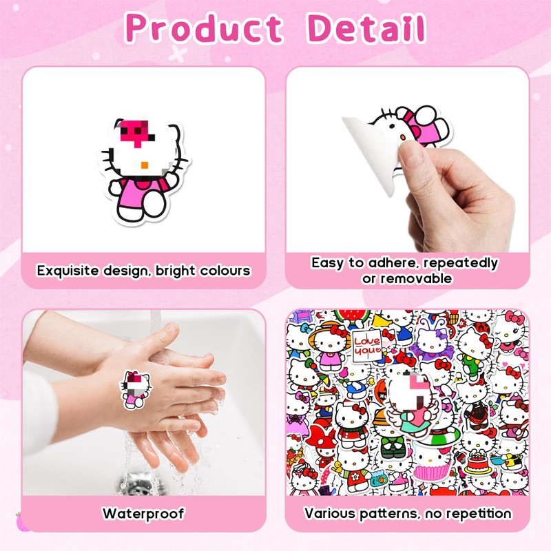 100Pcs Ki-tty Stickers Cat Stickers Waterprof Vinyl Sticker for Skateboard Car Laptop Water Bottles Walls Luggage Books Travel Stickers for Boys Grils Teens Adults