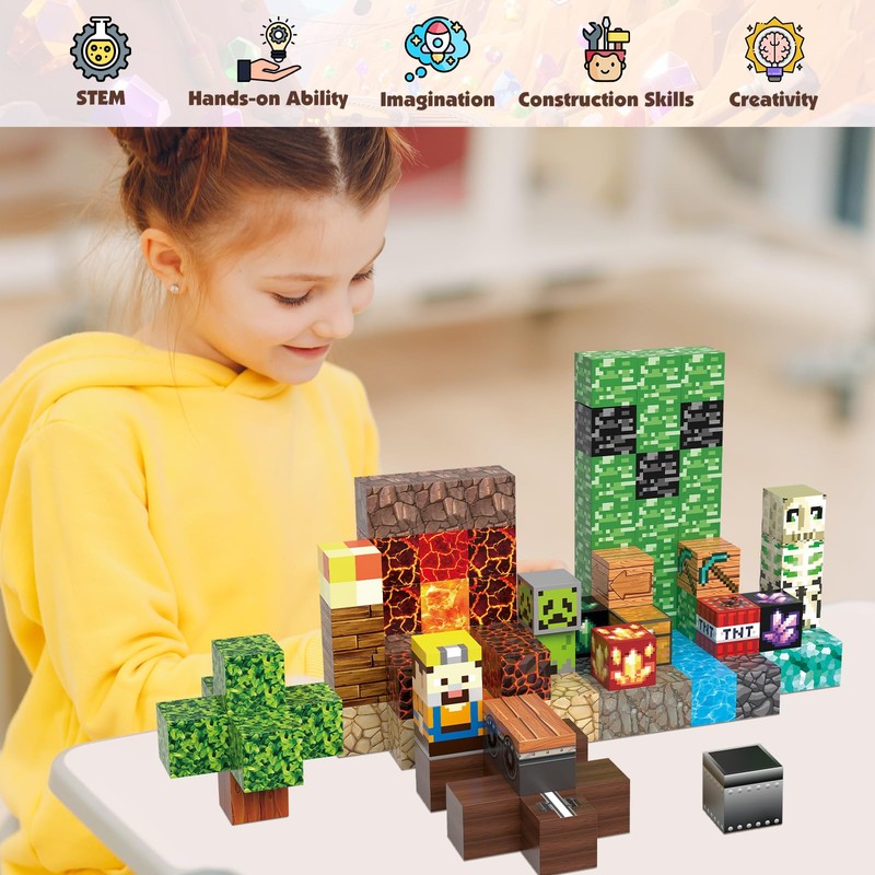 - ๐๐ผ๐๐ป๐๐น๐ฒ๐๐ ๐ฃ๐ผ๐๐๐ถ๐ฏ๐ถ๐น๐ถ๐๐ถ๐ฒ๐: Every block connects effortlessly at any angle--sideways, diagonally, even upside down, with no need for precise alignment or forced stacking, which unlocks limitless creative possibilities. Whether playing solo or collaborating with friends, kids develop problem-solving skills, critical thinking, and creativity through hands-on engagement. The intuitive magnetic design makes building easy and frustration-free