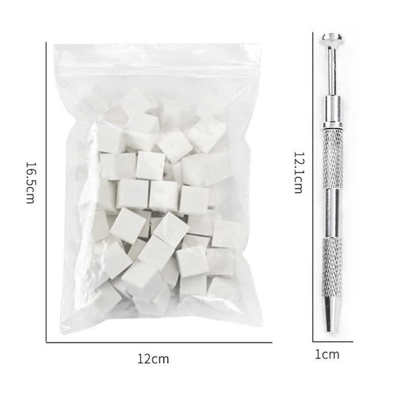 - Size(approx): sponge: 1*1cm/0.39inch, grabber tool: 12.1*1cm/4.76*0.39inch; Color: white sponge and silver grabber tool, as picture shown