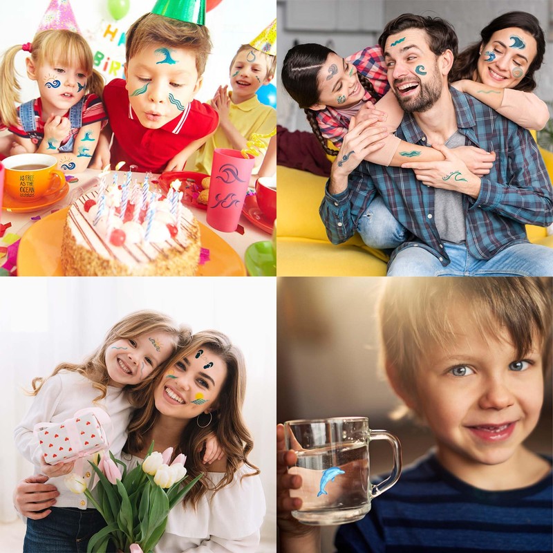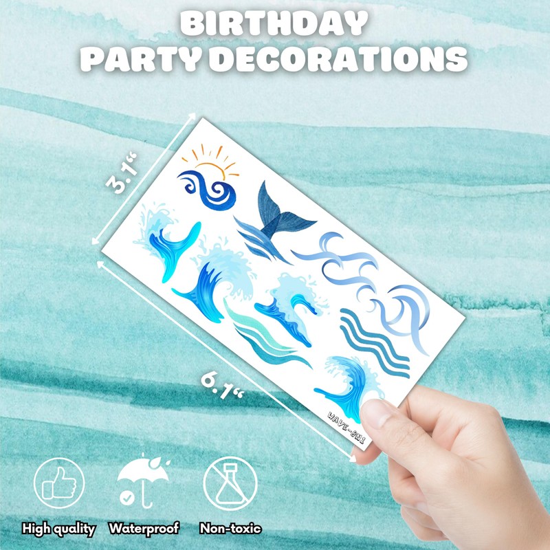 100PCS Ocean Wave Temporary Tattoos – Surf Beach Summer Theme Tattoo Stickers, The Big One 1st Birthday Party Decorations, Fun Party Favors, Gifts for Kids Boys Girls