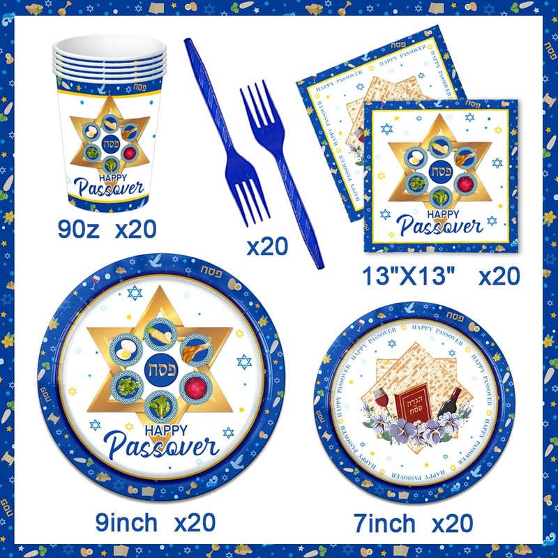100Pcs Passover Tableware Set-Happy Passover Party Supplies
