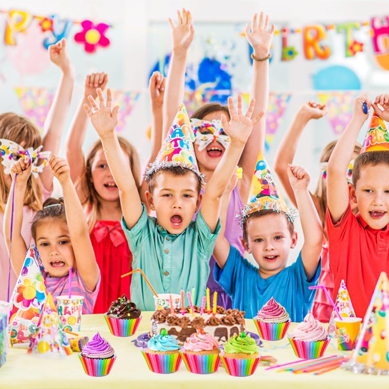 - Multipurpose versatility: Environmental disposable cupcake papers baking cups with a fun design bright rainbow colors, best choice for you to dress up your birthday, wedding, holiday, baby shower and other theme party. Baking cup is great for making cupcakes, baking muffins, preparing frozen treats, pastries and breads, desserts on a baking sheet, snack cups, and so on.