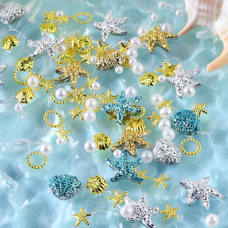 - Summer Nail Art: You will get 100Pcs 3D seashell starfish nail charms, with gold silver blue. Enough quantities to meet your nails daily design needs, make your nail to be more charming
