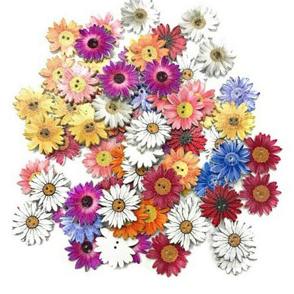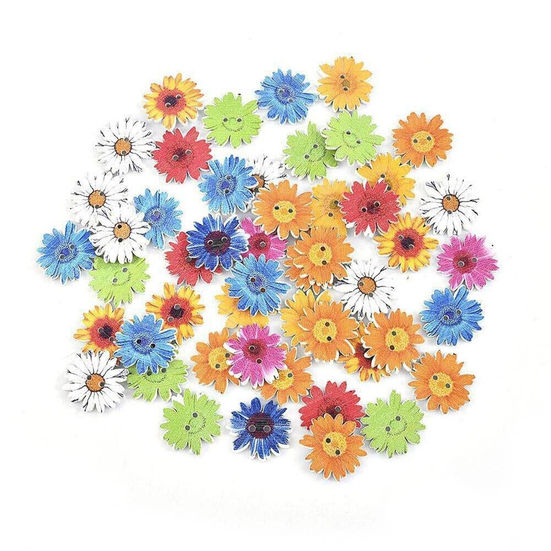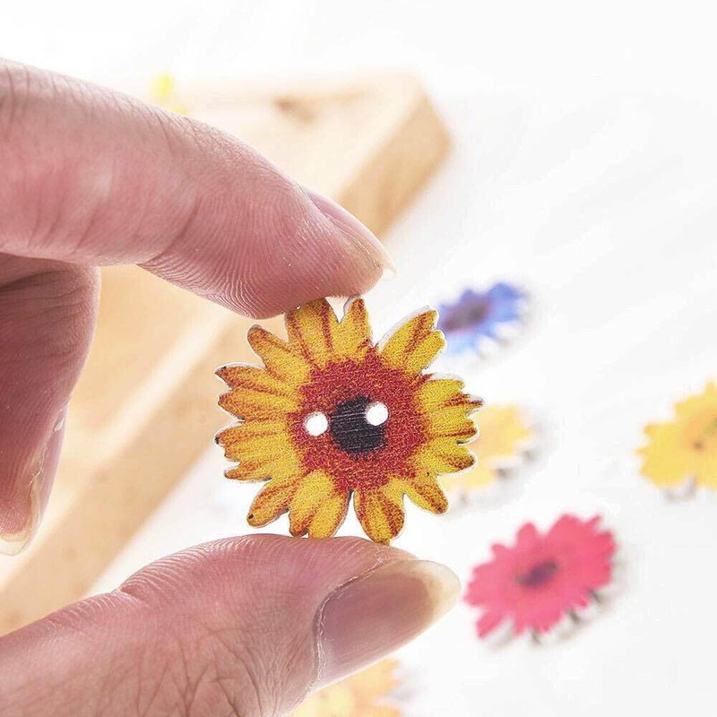 100PCS Wooden Buttons Sewing 2-Holes Scrapbooking Button Crafts Flower Shape (25mm)