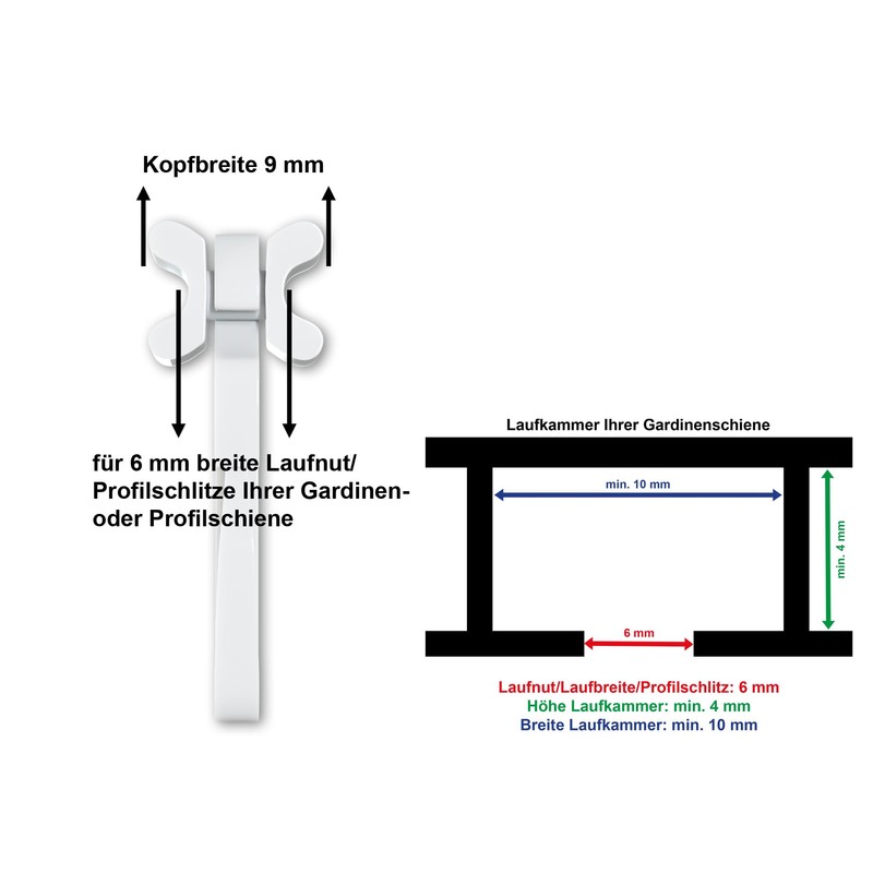 100x Professional Curtain Sliders with Joint for Aluminium Rails with 6 mm Cut-Out