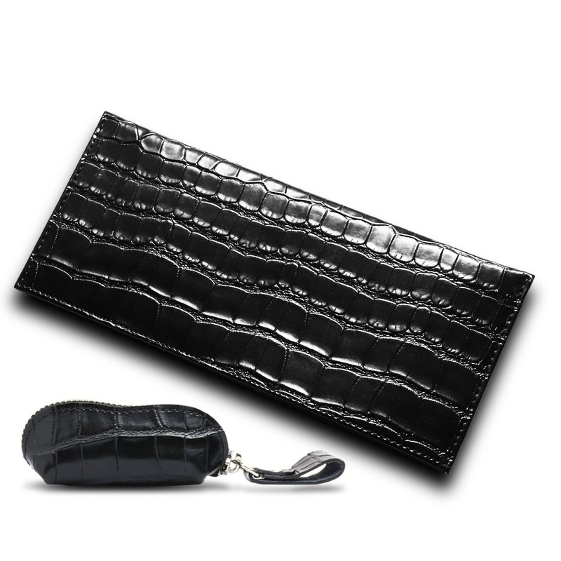 [101 Pieces] Ultra Thin Long Wallet for Men & Coin Purses, Cowhide Leather, Father's Day, Coin Purse, Thin, Lightweight, crocodile black