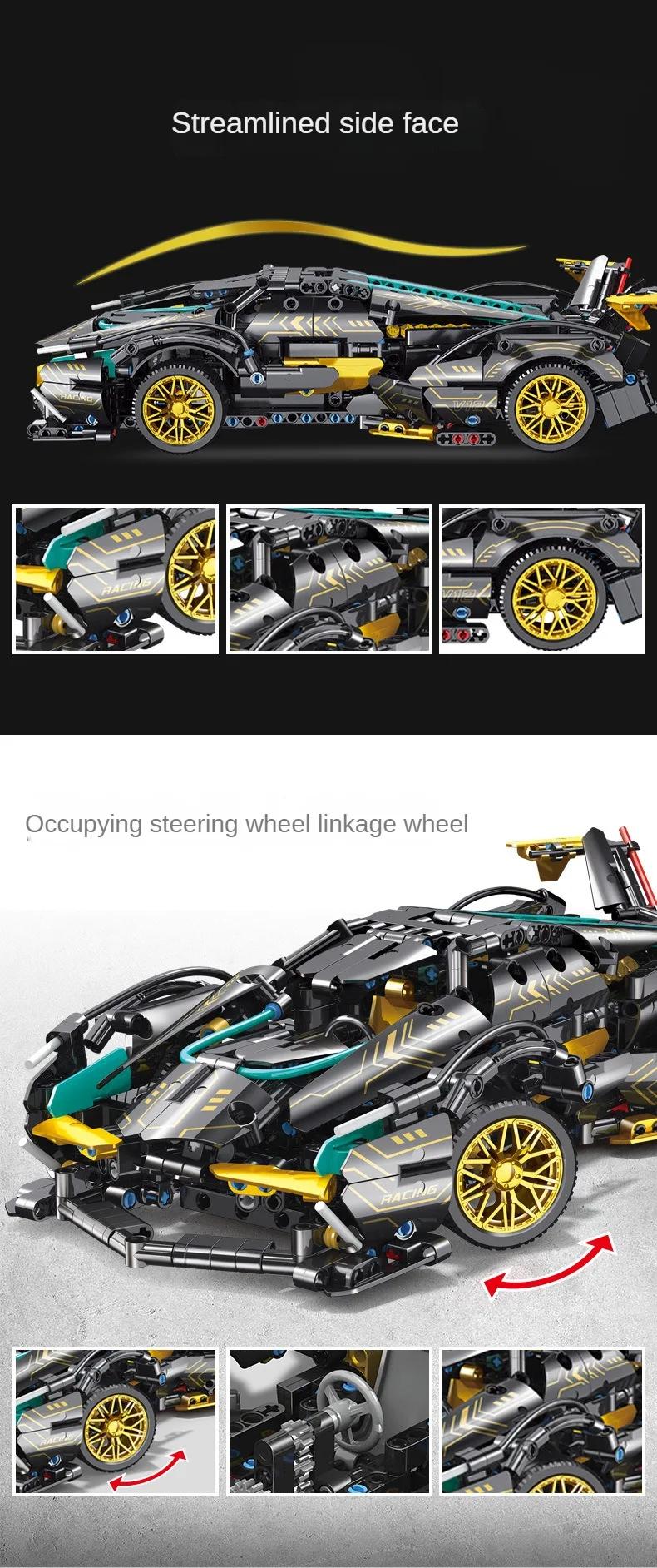 This 1012PCS High Tech 1:14 Black Golden Super Sports Car Static Assembled Toy—— is the perfect gift for any car enthusiast. It is compatible with all brands of small building blocks set, making it a versatile addition to your collection. Realistic Design: The V12 Concept Super Sports Car Racing model features a black and golden color scheme, giving it an elegant and sleek appearance that will impress everyone who sees it.