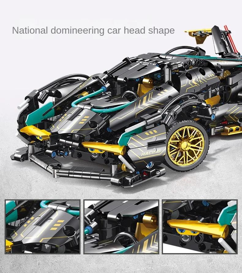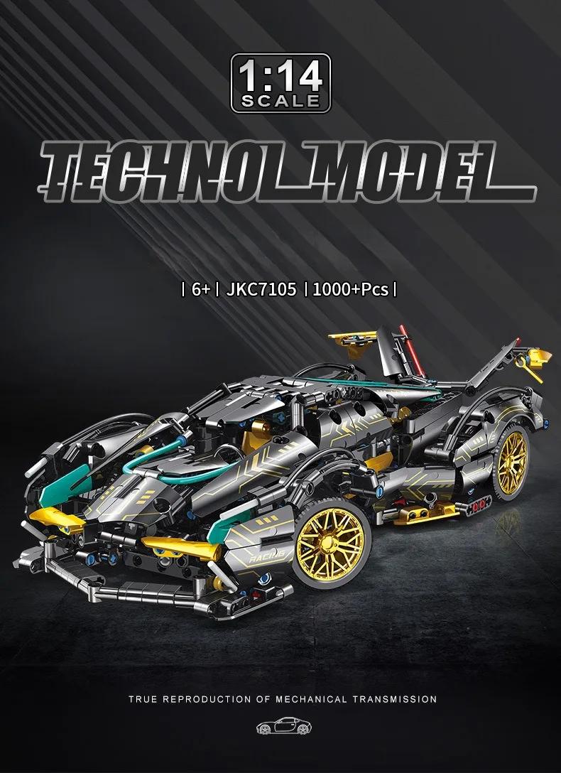 1012PCS High Tech 1:14 Black Golden V12 Concept Super Sports Car Racing Car Static MOC Bricks Technical Model Festival Gift Assembled Toy Compatible with all brands Small Building Blocks Set