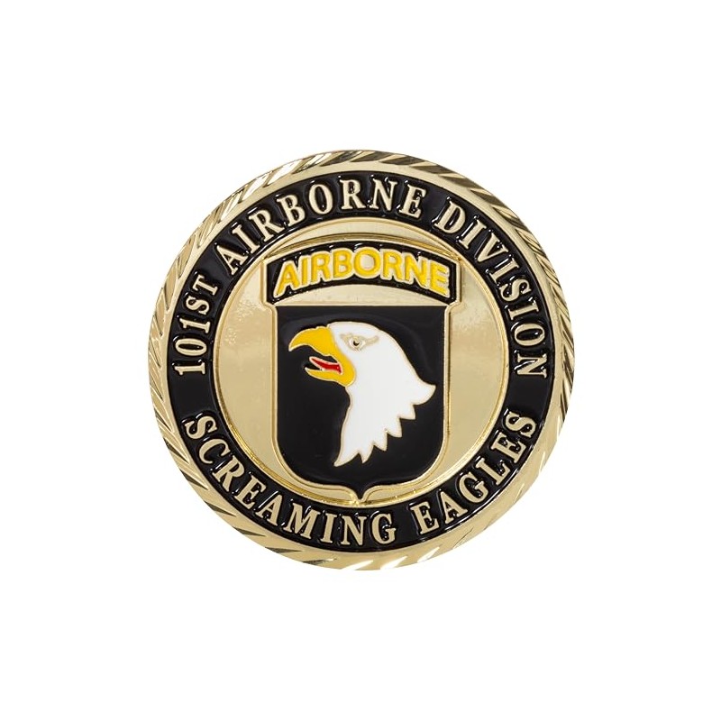 - Challenge coin features a unique design with the 101st Airborne Division Screaming Eagles logo