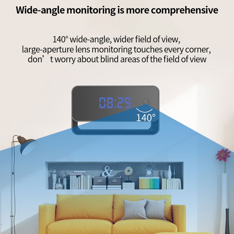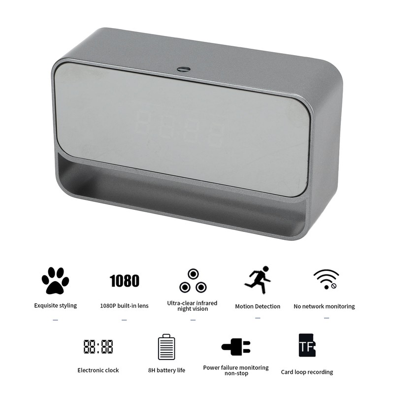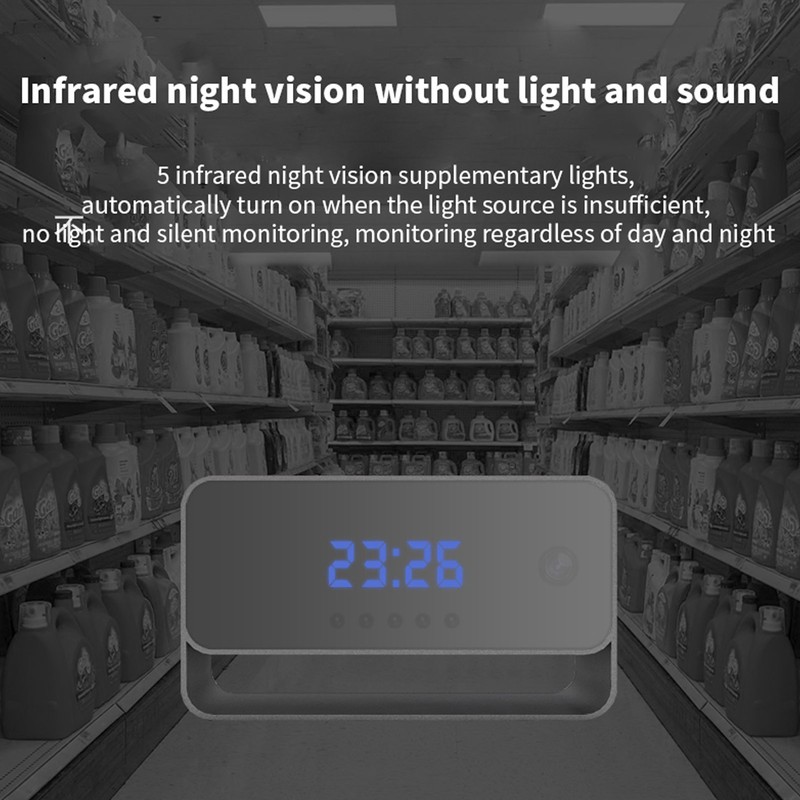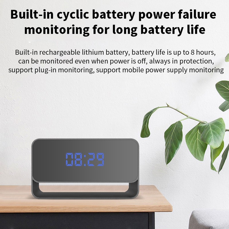 1、3.6mm Lens: The monitor camera looks like an ordinary clock with a lens only 3.6mm and no one can detect it as a camera. The camera has a built in camera and WiFi hotspot. After setting, you can view real time video remotely anytime, anywhere. 2、Protective: The camera supports 1080P resolution and can record everything in the office and home. We can use it to prevent theft and harmful intruders, and monitor your baby and staff to protect your attributes. 3、Good Performance: The camera has a 2600mAh battery that can record for 8 hours or 24 hours when charging. 140° wide Angle monitoring is more comprehensive, large aperture lens monitoring touches every corner. There's no need to worry about blind spots. 4、Phone Connected: You can set up active movement detection (Small memory card must be inserted) in the application. When someone breaks into your home and office, the alert notification will be pushed to your mobile application and the movement detection will be recorded in the application. The clock time will be synchronized with the time of the connected phone, which you can calibrate in the app. 5、Applicable Scene: It can be carried to living room, bedroom, business, nanny, baby room monitoring, security camera design reduces detection risk. Automatic night visionto the human eye, can clearly record everything even in the dark.