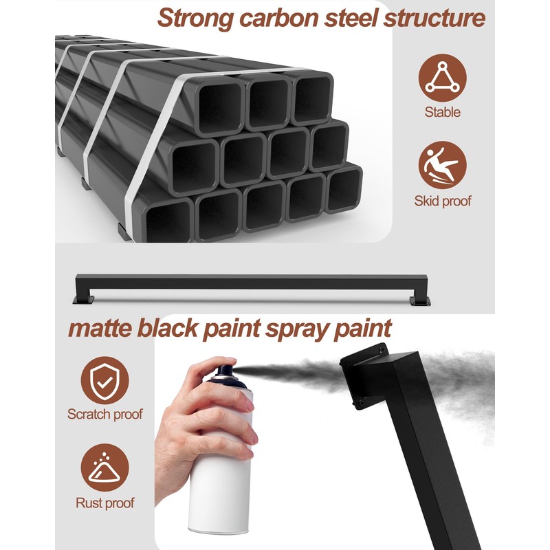- 【Main Parameters】:Color:matte black finish;Length 10 feet between the dimensions divided into 4 sections,square tube size is 1.2inches/3 cm,gap from the wall is 3.1inches/8cm,each section is tightly connected for easy grip,2.4 inches(6cm)square mounting pad,installation is firm and stable,this wall-mounted handrail is available in various lengths to suit different spaces to meet your needs.
