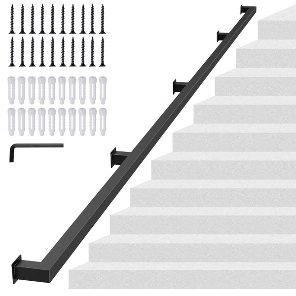 - 【Easy Installation】:Our stair handrails can be easily installed.first mark the drilling position, use a 6mm drill bit to drill the holes,insert the expansion screws,fix the handrail to the wall with screws,and tighten to ensure a safe and stable installation.the square tube stair handrail is installed on any horizontal or inclined surface. It is recommended that two people work together to install it.the smooth surface and material allow for quick and easy cleaning by simply wiping or washing.