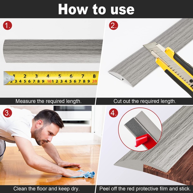 • 【EASY TO INSTALL】Adhesive is attached to the back of the product, which can be installed and pasted after tearing it off. There is no need to punch holes in the floor and do not damage the floor. You only need to clean the floor or wall and keep it dry, cut the right size, then tear off the tape, press the transition strip until it is stable on the floor or wall.
