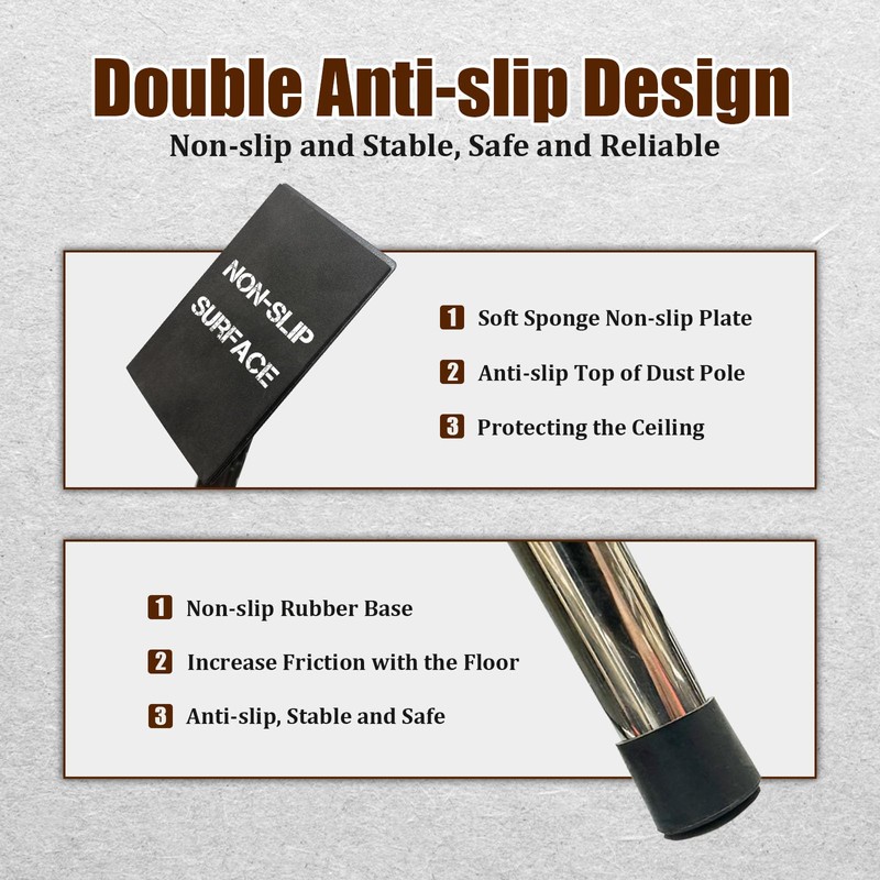 - Anti-Slip Design, Secure Stable: Dust poles feature a sponge pad at the top to prevent sliding and protect the ceiling, while the anti-slip base keeps them stable on the floor for secure stable.