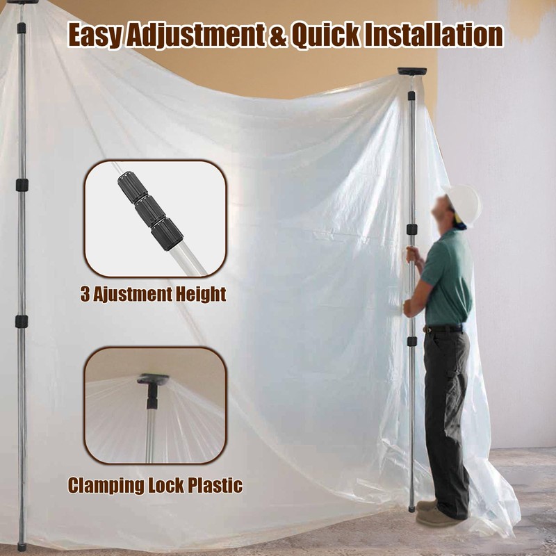 - Easy Adjustment, Quick Installation: Clamp the plastic sheeting to the top of the telescoping pole, twist the lock, and adjust to the desired height without a ladder. Create a tight dust barrier in minutes.