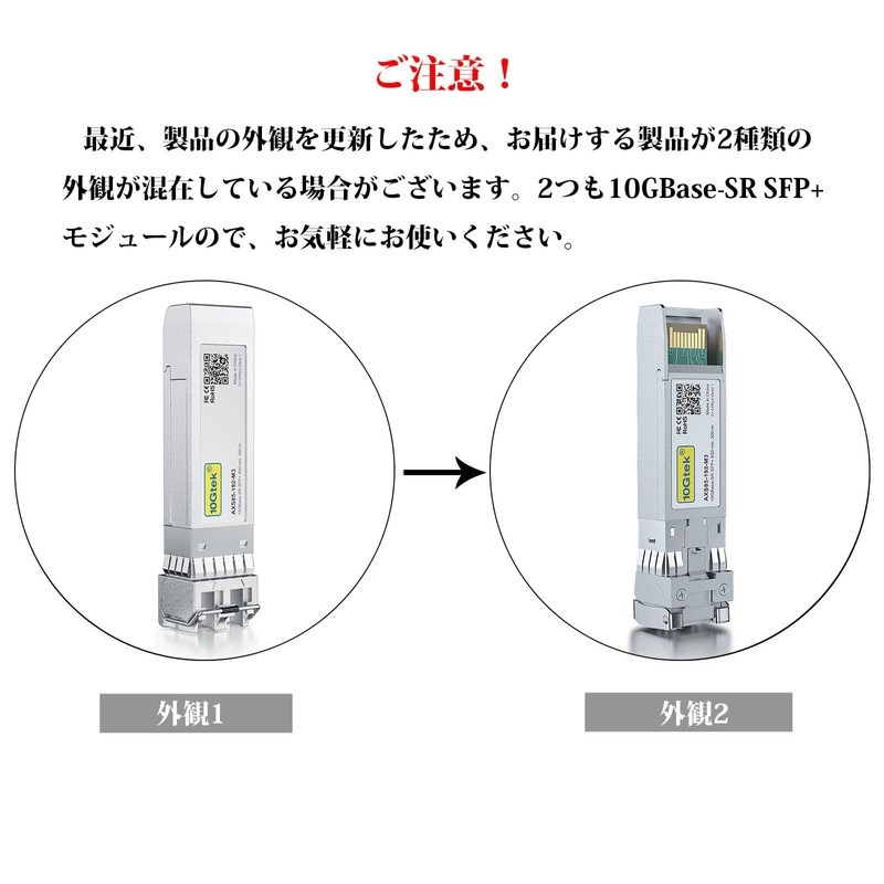 - [Caution] 1. Appearance: Due to recent updates the appearance of the product, there may be a mix of two types of looks of the product you receive. Two 10GBase-SR SFP+ modules, so feel free to use. (Refer to the fifth picture) 2. Packaging: Due to recent changes in the packaging of the product, the product you receive may receive may contain two types of packages