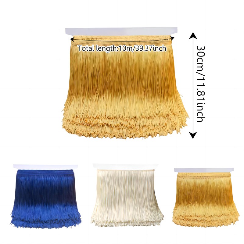 - 【Size and Color】: Our Tassel Trim measures is approx. 10m/11 yards in total length, and 30cm in height with tassels measuring 29cm, allowing for easy customization through cutting. Available in cream, deep gold, and sapphire blue, you can easily find the perfect match for your specific project needs.