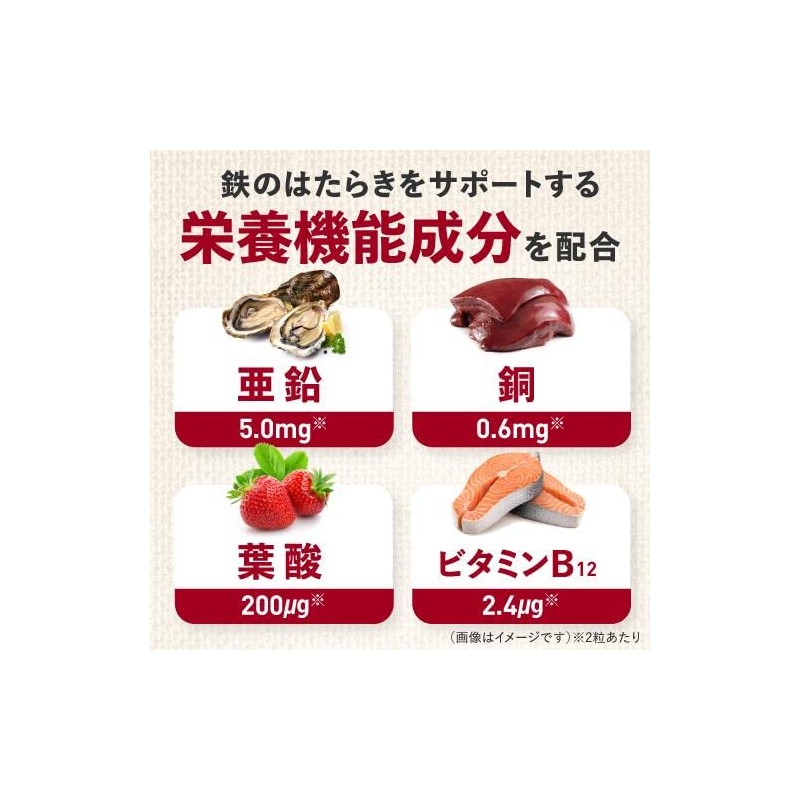 - 鉄不足に陥りやすい女性におすすめです。亜鉛は、味覚を正常に保つとともに、皮膚や粘膜の健康維持を助け、たんぱく質・核酸の代謝に関与して、健康の維持に役立つ栄養素です。銅は、赤血球の形成を助けるとともに、多くの体内酵素の正常な働きと骨の形成を助ける栄養素です。葉酸は、赤血球の形成を助けるとともに、胎児の正常な発育に寄与する栄養素です。ビタミンB12は、赤血球の形成を助ける栄養素です。