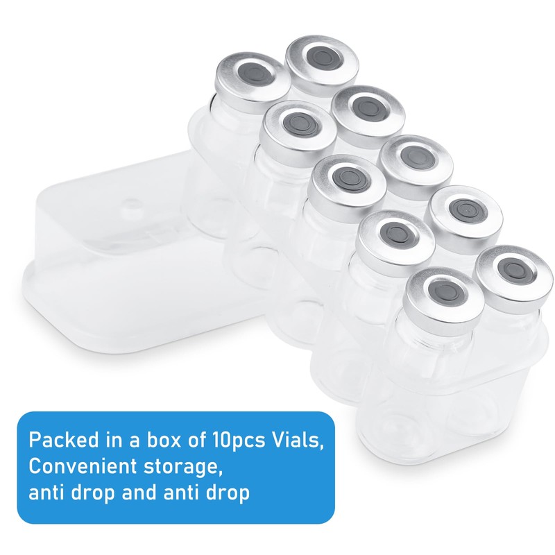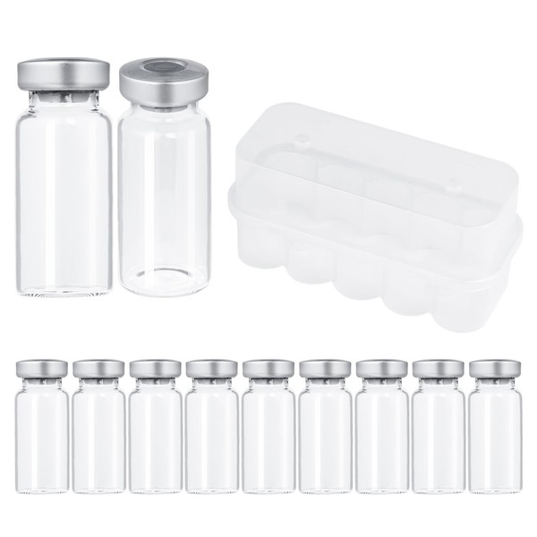 10ml Glass Vials for Injection, with Self Healing Injection Port, Transparent Sealed, Empty Vials for Injection(10pcs, 10ml)