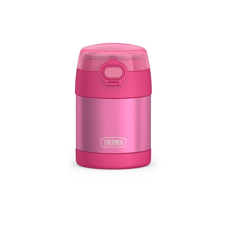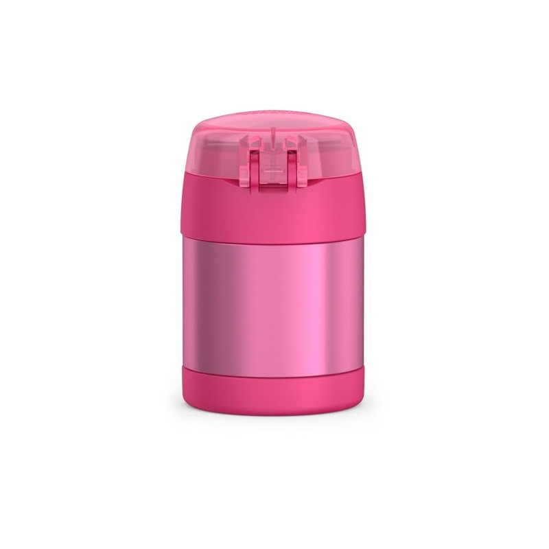 - Enjoy hot and cold meals while out and about with this Thermos FUNtainer 10 Oz Stainless Steel Food Jar With Snack Top And Spoon. The vacuum insulated jar helps contents maintain their temperature so cold foods don't cause the jar to sweat and hot foods are safe to handle.