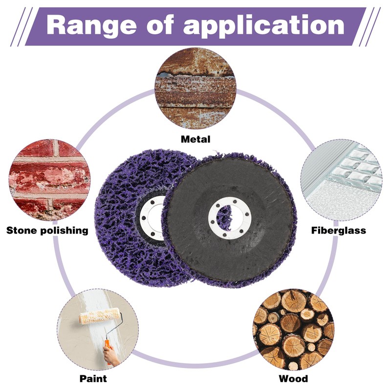 - 【Stripping Wheels】You will receive 10pcs 4.5-inch purple wire stripping wheels, inner diameter: 0.875 inches; maximum speed 12,500 (rpm).The stripping disc is suitable for 4-1/2 inch angle grinders. Please ensure the spindle size of your angle grinder is compatible before purchasing