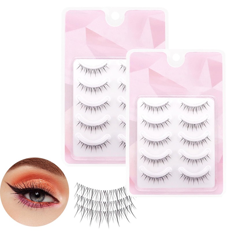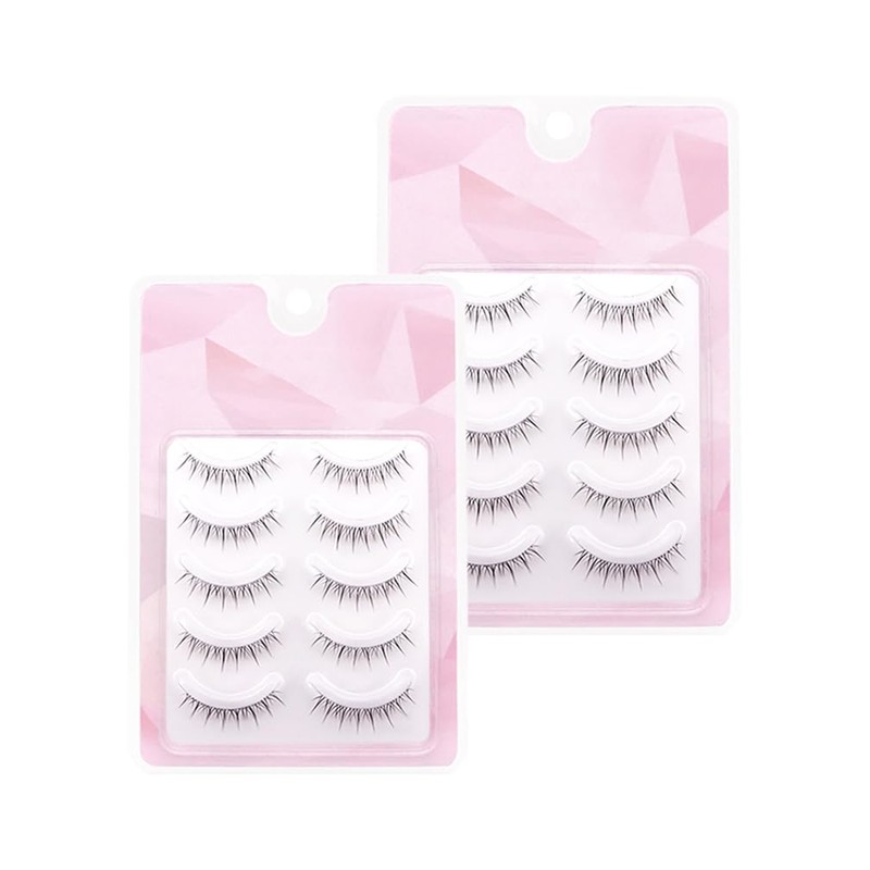 - 【Natural Artificial Fiber Lashes】You will receive total 10 pairs (5pairs/box, total in 2 boxes) false eyelashes, enough for your daily use or training needs. The total length of each fake eyelashes is about 28mm/1.1inch, which can be cut at will. You are going to get a lot of compliments with these wispy false eyelashes! Natural looking and lightweight, perfect for any occasion and will give off such a classy look. Adding just the right amount of length and fullness for everyday wear.