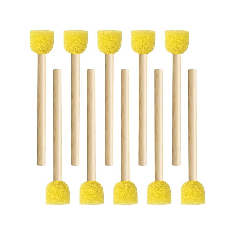 10pcs 0.6'' Sponge Brushes for Painting, Round Foam Paintbrushes with Wooden Handle, Sponge Paint Brush Staining Tool for DIY Arts and Crafts- Yellow