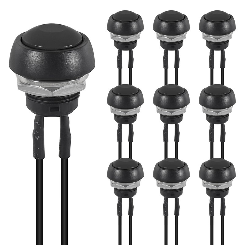 - 10PCS 12mm Waterproof Momentary Push Button Switch, Mini Push Button Horn Switch, round push button switch, push button switch 12v,momentary power switch, with Pre-soldered Wires