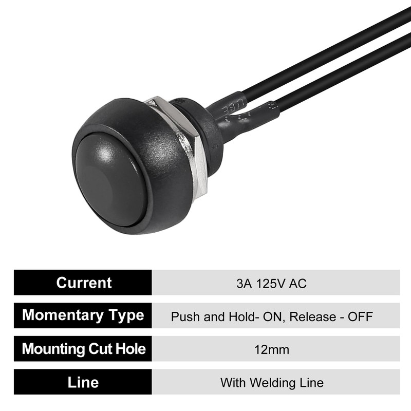 Package: 10PCS 12mm Momentary Push Button Switch with Pre-soldered Wire