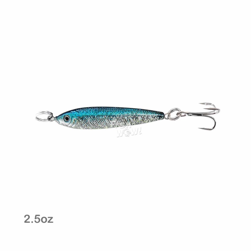 10pcs 2.5oz Fish WOW! Fish Metal Bait Jig 2-1/2oz Mega Live Lure with a Treble Hook -5 Colors- Black Silver, Blue Sardine, Blue, Pink,Glow