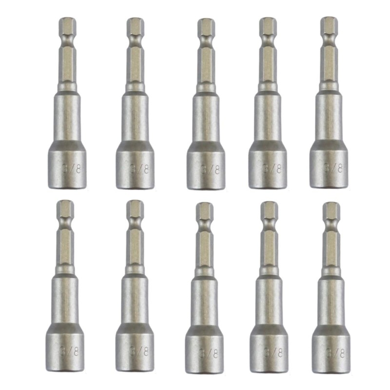 - 【Package Included】10Pcs 3/8” Nut Driver Drill Bit,65 mm (2.5 inch) total length, enough quantity to meet your needs