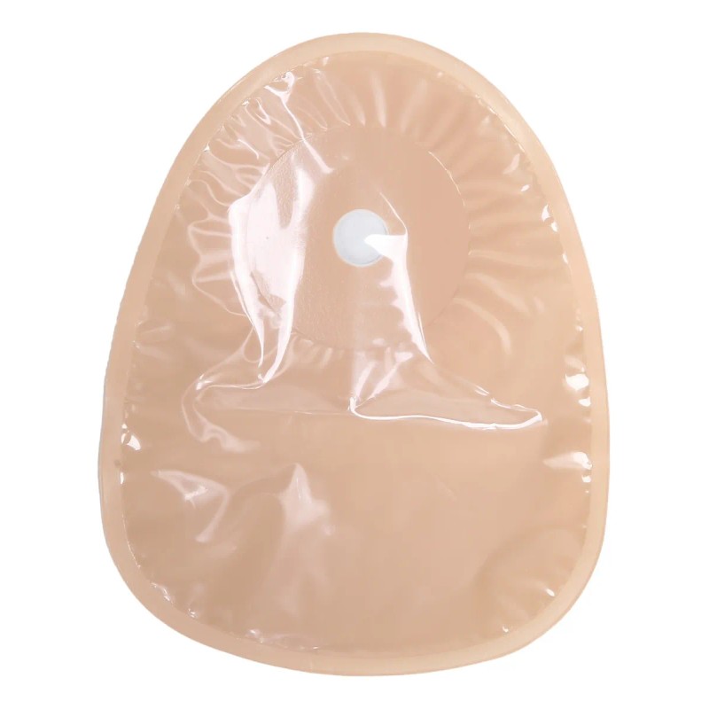 (5) Al instalar la bolsa, en primer lugar soplar un poco de aire en la bolsa, en caso de que la pasta de película de la bolsa, a continuación, encajar el agujero de corte y cubrir el estoma, la primera colostomía ligera presión cerca de la piel, a continuación, lentamente en la presión circundante hacer que la película contra la piel, a continuación, lentamente en la presión circundante hacer que la película contra la piel, mantenga la película con la mano durante unos minutos cuando la temperatura es baja, la presión y la temperatura de la mano puede hacer que la pasta de película más estable.