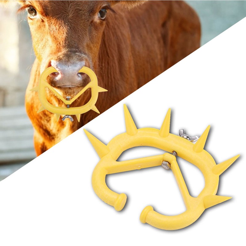 1、Made of high quality plastic, safe, non-toxic and durable. 2、They are designed with spikes which cause discomfort to the mother, so as to reject the calf's suckling. 3、These nose rings clip onto the nose without piercing it, no harm to the calves and reusable. 4、The tightness is adjustable by screw, and not easy to fall off. 5、Designed for calves, and help calves to be weaned.