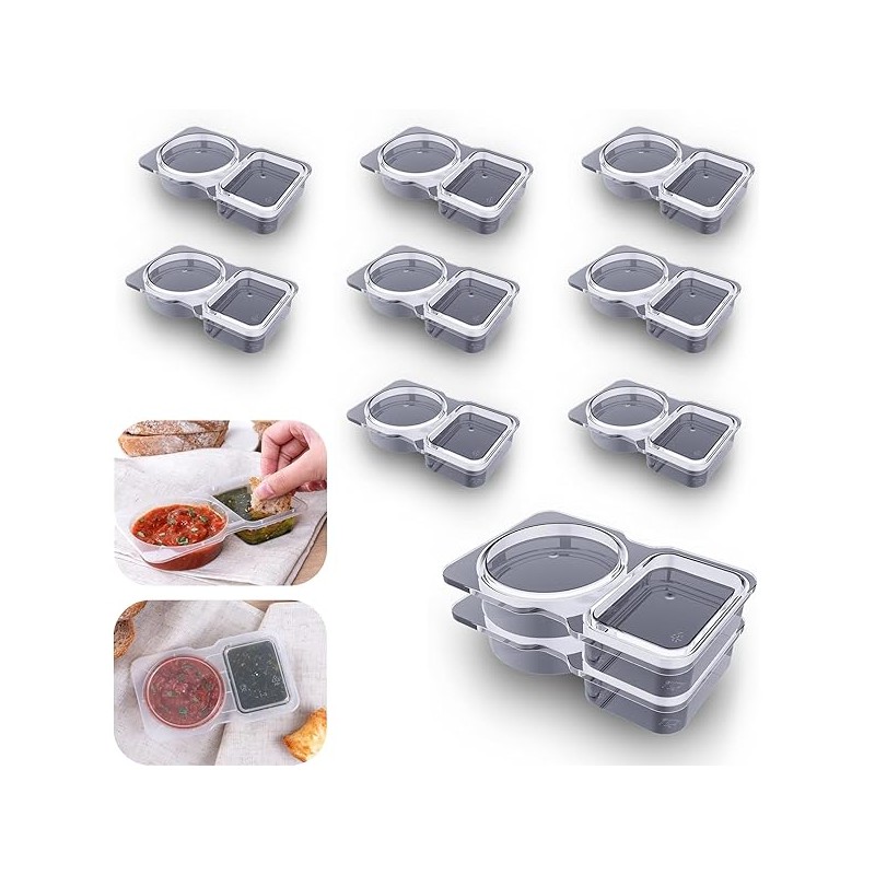 10Pcs Double Compartment Condiment Container with Lid Double Compartment Snack Containers Double Compartment Snack Containers for to-go Sauce, Sampling, Travel Snack (Transparent 10PCS)