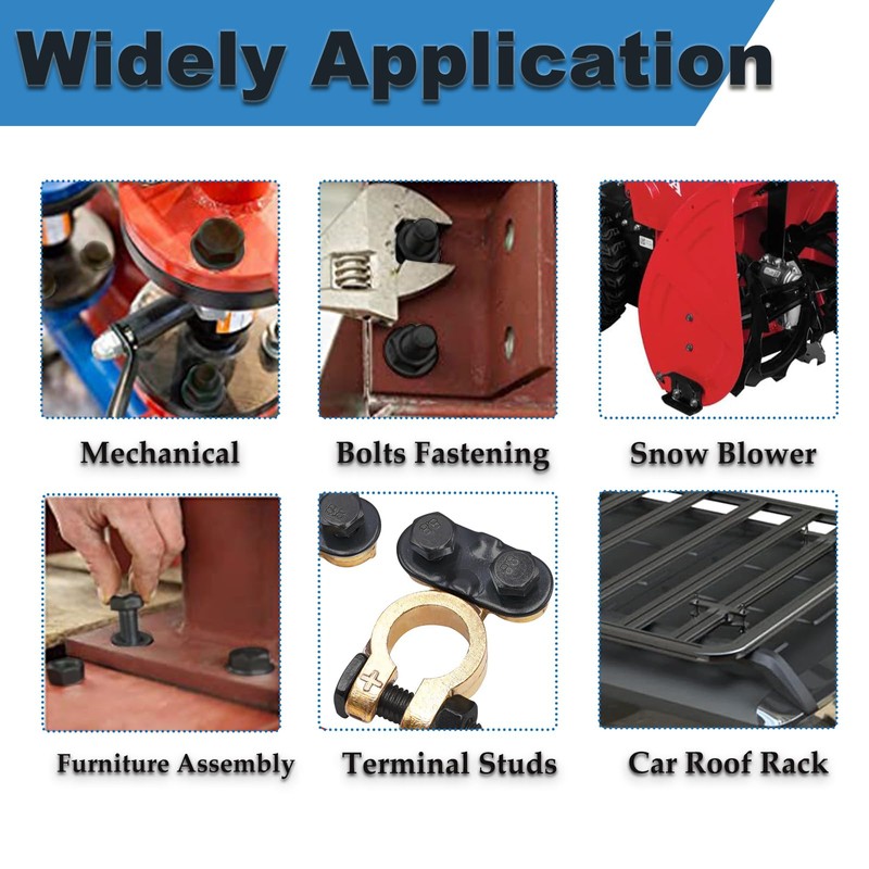 - Compatible with 13mm Wrench - the hex head machine bolts are compatible with most kinds of hand tool torque wrench or air ratchet, however the impact wrench drive may damage the thread of bolts