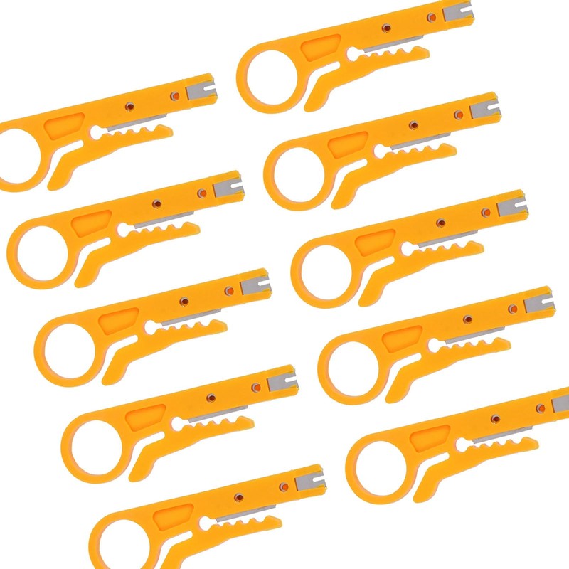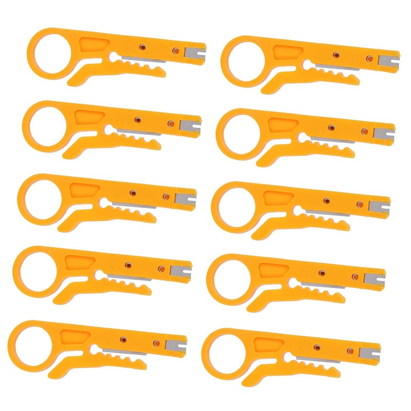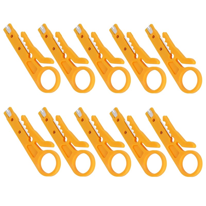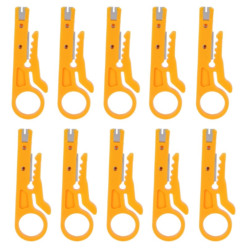 10PCs Mini Wire Ripper Portable Cable Crimping Striping Ornamental Plant Tool for Electricians, CAT -5/6 Data Line Hand Crimper, ABSstainless Steel Yellow Stripper, Applicable Scene: Professional
