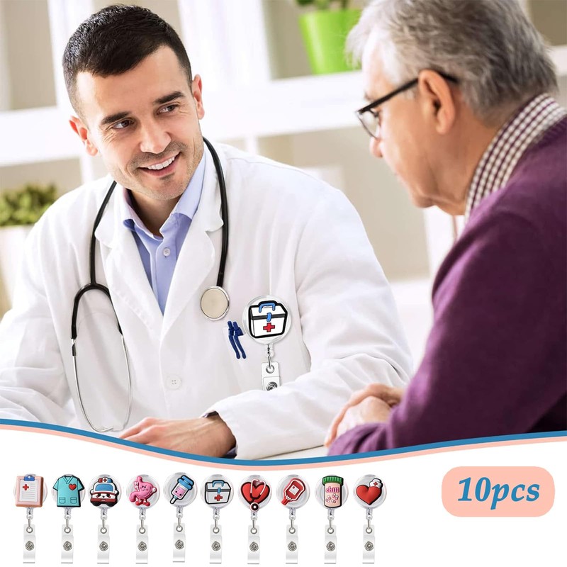 10PCS Nurse Badge Reels,CordName Card Holders with Clip,Retractable Cute Nursing ID Badge Reels,Creative Pattern Themed Badge Clip, Gifts for Doctors, Nurses, Medical and Health Hospitals Workers