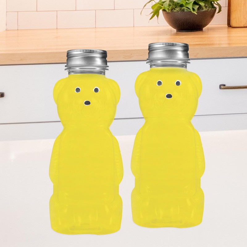-High durability and not easy to deform. Fine workmanship and good texture practicality clear bear bottle for juice.