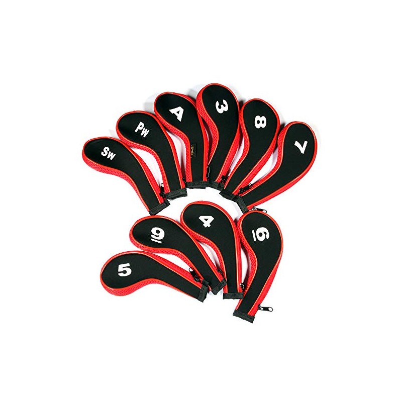 10pcs/Set Neoprene Zippered Long Neck Number Print Golf Iron Covers … (Red)