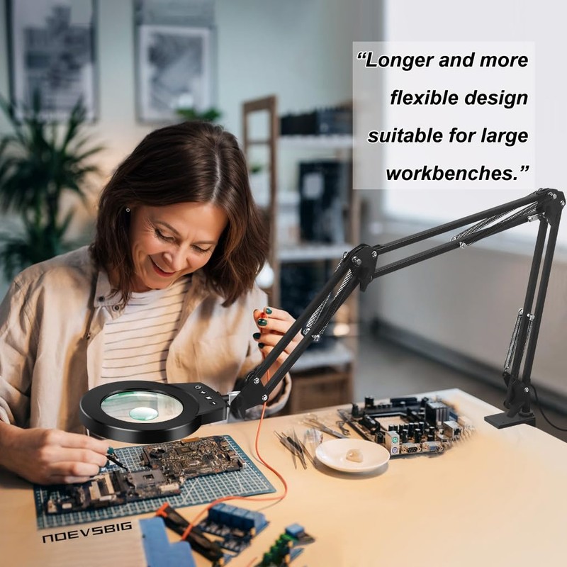 - ๐๐ข๐๐ฒ๐ฟ๐ต๐ฒ๐ฎ๐ฑ ๐๐ถ๐ด๐ต๐ฒ๐ฟ ๐ง๐ฎ๐๐ธ ๐ ๐ฎ๐ด๐ป๐ถ๐ณ๐ถ๐ฒ๐ฟ ๐๐ฎ๐บ๐ฝ ๐ณ๐ผ๐ฟ ๐๐ฎ๐ฟ๐ด๐ฒ ๐ช๐ผ๐ฟ๐ธ๐๐ฝ๐ฎ๐ฐ๐ฒ :Featuring a 3-section swing arm and robust big clamp, our lamp offers unmatched adaptability, ensuring precise light and magnification alignment without cluttering your creative space. It's the ideal companion for artisans and hobbyists who demand flexibility in their dynamic workspaces