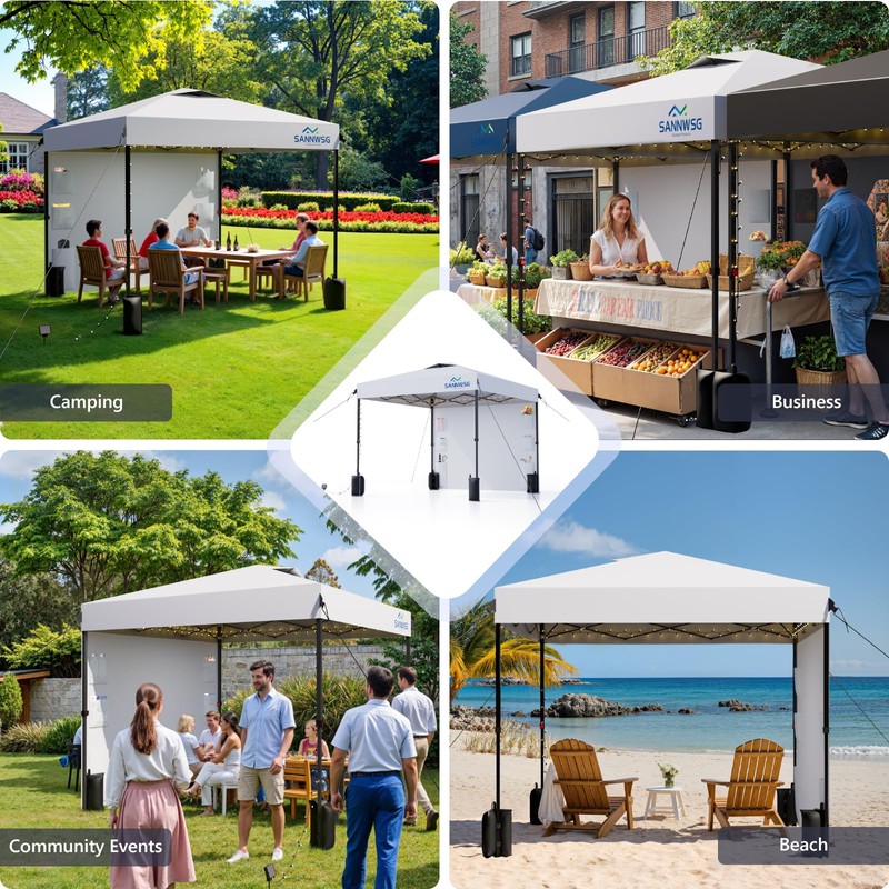 This versatile canopy features a one-touch locking mechanism for quick, tool-free setup in seconds, with 3 adjustable heights to suit various needs. The 10x10 ft (100 sq ft) shade area comfortably accommodates 8-10 people, perfect for outdoor gatherings, markets, or beach trips.