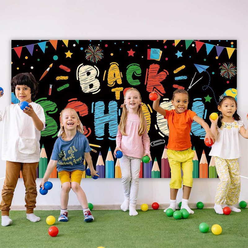 10x8ft Back to School Backdrop, Chalk Drawing and Blackboard Backdrop, First Day of School Decorations Background for Kids Classroom Party Decoration Supplies