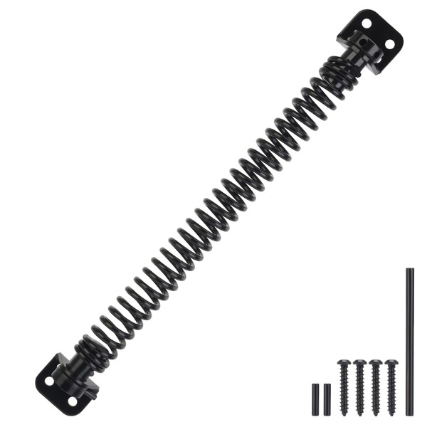 11-1/2" Gate Spring Self Closing, Heavy Duty Black Door Closer Spring, Adjustable Tensioner Automatic Outdoor Gate Closure, Gate Spring Hardware with Adjustable Tool for Wooden and Vinyl Fence, 1 Pack